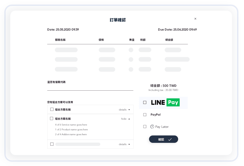 針對想要線上收款的經營者,我們也串接了許多主流的金流平台,如:LINE Pay、綠界、藍新、支付寶或 PayPal 等,這些金流管道足夠經營者收取來自世界各地的款項。