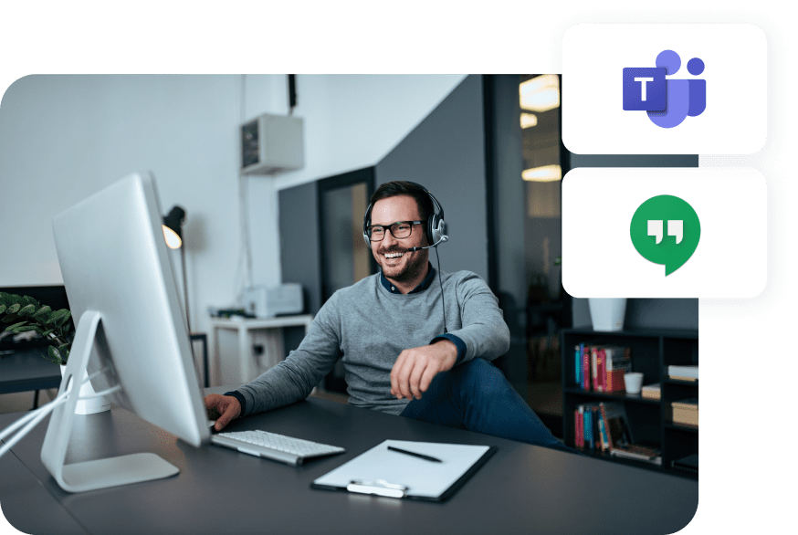 Ofereça consultas de vídeo online por meio de integrações nativas com o Microsoft 365/Teams ou envie automaticamente um link do Google Hangout com a confirmação do agendamento.